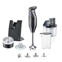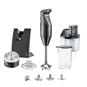 bamix® to najmniejsze, a jednocześnie najbardziej wydajne i wszechstronne urządzenie kuchenne na świecie. Dzięki różnym akcesoriom bamix® jest idealnym pomocnikiem w wielu zadaniach. Można go używać do siekania, mielenia, przecierania, emulgowania, mieszania, miksowania, spieniania, mielenia, rozdrabniania, ucierania i ubijania żywności. Jednocześnie bamix® jest niezwykle łatwy w obsłudze i czyszczeniu.  W komplecie: wielofunkcyjne ostrze, trzepaczka, ubijaczka, maszynka do mięsa, robot kuchenny, dzbanek o pojemności 1000 ml, podstawka SwissLine i SliceSy®.